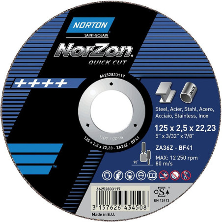 Meule de tronçonnage moyeu plat norzon quick cut-métal - NORTON