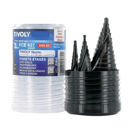 Coffret de 3 forets coniques HSS étagés COBALT - TIVOLY
