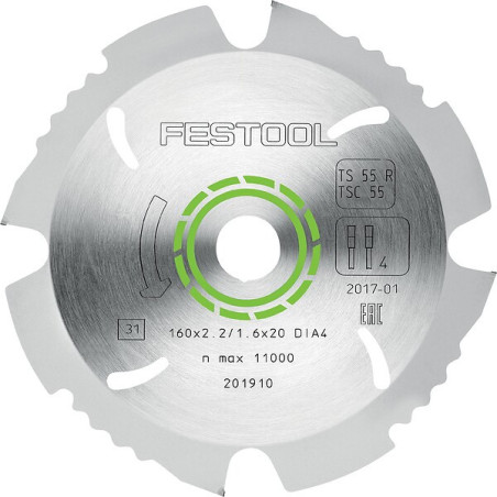 Nombre de dents : 4 - Diamètre (mm) : 160 - Alésage (mm) : 20 - Épaisseur du trait de scie (mm) : 2.20 - Épaisseur du corps de la lame (mm) : 1.60 - Unité de vente : (1 pièce) •