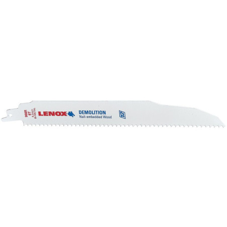 Conditionnement : Carte de 2 - Lame : Bimétal - Coupe : Droite - Modèle : Lenox 960 R - Denture : Grossière - Matériaux à couper : Châssis métalliques, démolition - Longueur de la lame (mm) : 225 - Pas (millimètre (mm)) : 4 - Unité de vente : (1 conditionnement) •