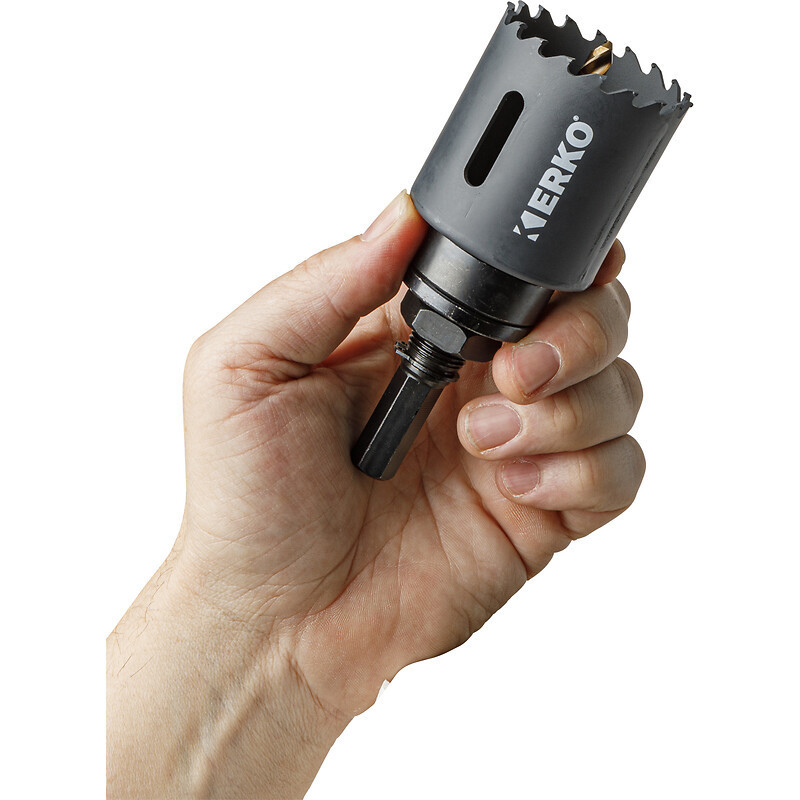 Accessoire : 1 arbre 42002-EZC 1 foret pilote HSS de rechange 1 foret pilote CARBURE 1 clef 6 pans hexa pour changer le foret pilote - Diamètre (mm) : 22-25-35-44-51-60-68-76 - Offre : Stockée par les fabricants - Unité de vente : (1 kit) •