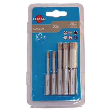 Lot de 5 forets Diamantés 6 pans Grès cérame - LEMAN