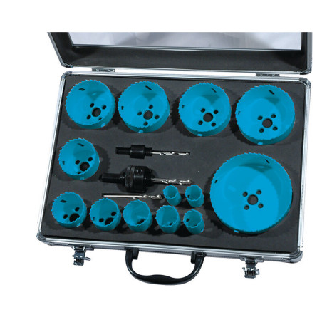 Coffret de 13 trépans bi-métal + 2 mandrins + 3 forets •