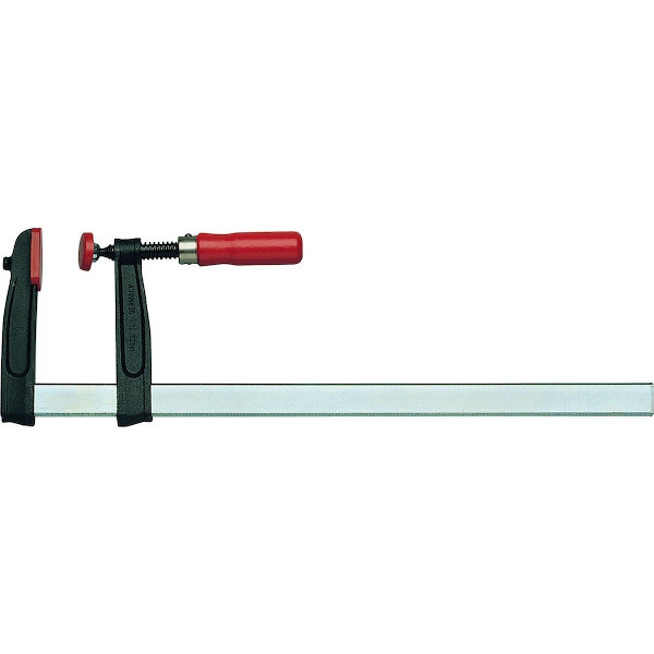 Rail acier étiré à froid cranté zingué. Poignée bois. Valet et coulisseau en fonte malléable. Protections plastiques aux mors de serrage.Garantie 1 an