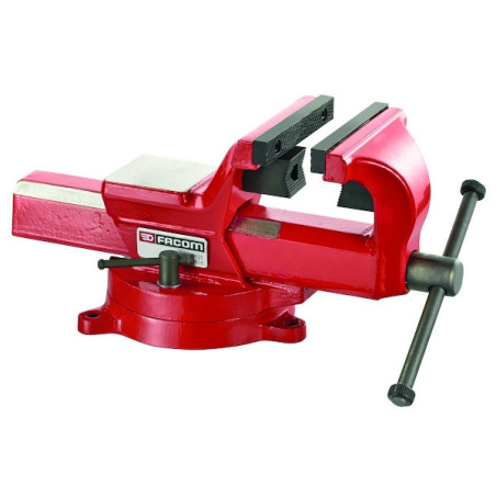 Pivotant à 360°. Charge de rupture 700 N/mm² minimum : fonctionnement de l'étau préservé même sous de lourdes charges. Mors parallèles interchangeables. Mors en V pour le serrage des tubes. amovibles. Grande résistance à l'usure. Système de réglage par 2 vis complexes à rattrapage de jeu.