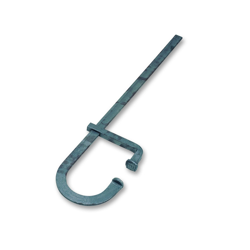 Outil indispensable du maçon. le serre-joint de maçon ou de cimentier plat. en acier forgé brut. permet de réaliser des coffrages en maintenant serré un assemblage provisoire de pièces qui serviront de forme pour couler du ciment ou du bétonPlat Valet forgé Canne monobloc Section de la tige : 3 x 0.8 cm Saillie : 17.5 cm