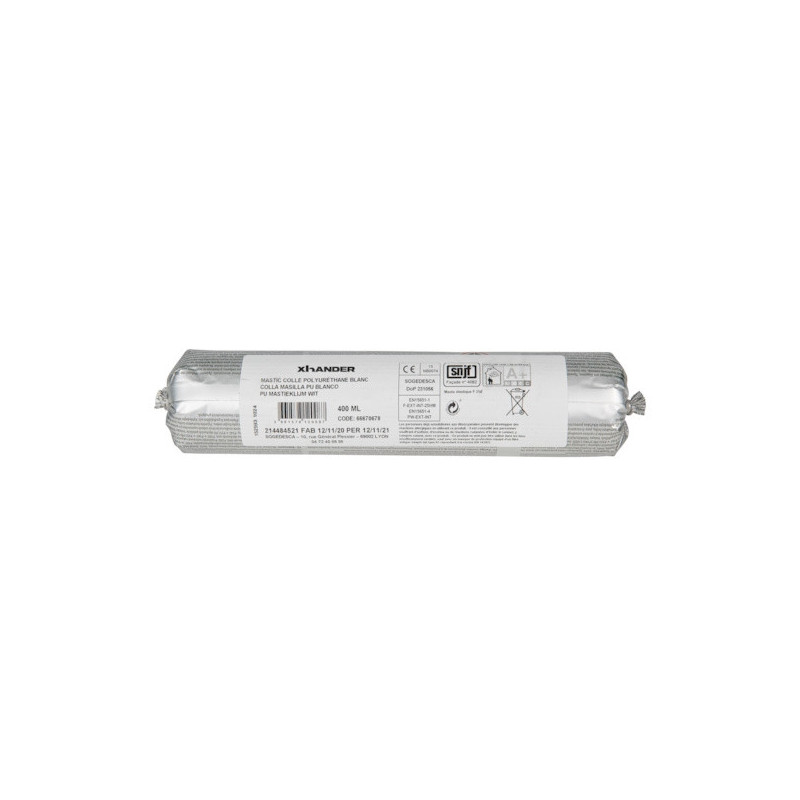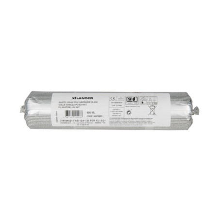Format poche. prend moins de place qu'une cartouche. moins de déchet. plus écologique.Haut module. très bonne adhérence et recouvrable.Mastic colle polyuréthane. haut module. neutre et élastique.Utilisations : collage et étanchéité dans le bâtiment. collages structurels dans des applications vibrantes. joints de raccordements. collage de plinthes. de tuiles…Haut module.Très bonne adhérence sur de nombreux supports.Bonne résistance aux rayons UV.Recouvrable par la majorité des peintures aqueuses après séchage. · Supports : tous supports · Application : extérieur. intérieur · Base : polyuréthane · Vitesse de polymérisation : 3 mm/24 h · Temps de formation de peau : 15 mn. · Durée shore : 37 + 5 Shore A · Résistance aux températures (en °C) : - 30°C à 90°C · Températures d’application (en °C) : 5°C à 35°C