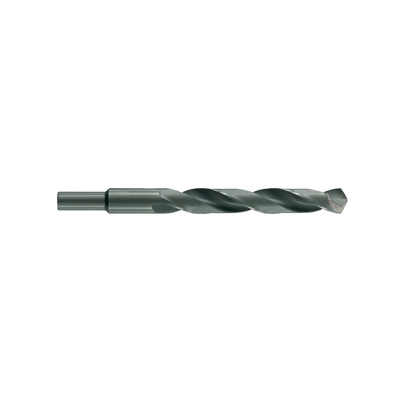 Affûtage pointe en croix : amincissement de la pointe du foret.Pointe 118° : angle de pointe à 118° de l'affûtage du foret.Queue réduite : diamètre de queue réduite à un diamètre inférieur à 12mm.Goujure type N à 30° : profil de goujure avec un angle d'hélice à 30°.Acier rapide : Substrat HSS.
