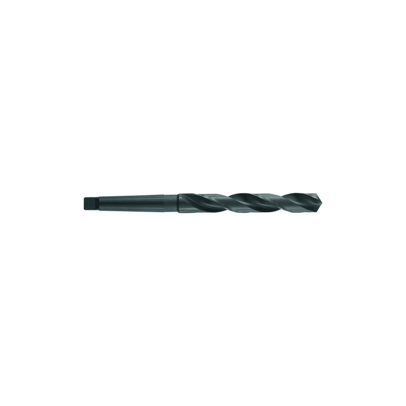 Pointe 118° : angle de pointe à 118° de l'affûtage du foret.Affûtage conventionnel : en dépouille conique.Queue cône morse : queue conique à tenon pour perceuses à colonne et machines outils.Goujure type N à 30° : profil de goujure avec un angle d'hélice à 30°.Acier rapide : Substrat HSS.