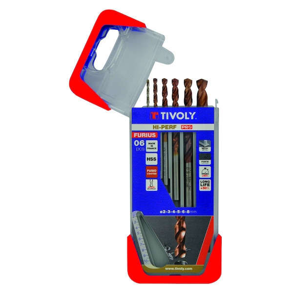 Coffret Clipster 6 forets Diam 2-3-4-5-6-8 mm Matière: HSS Revêtement FUSIO à partir du Diam 3 mm. Pour Acier: usage courant
