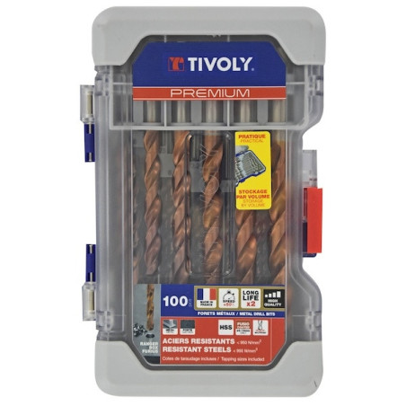 Foret haute performance pour le perçage hyper rapide et intensif des aciers résistants et des fontes grâce à sa géométrie et son revêtement FUSIO. Fabriqué en France.Ø 1- 1.5 (x5 pcs)- 2- 2.5- 3 (x 10pcs)- 3.2- 3.5 (x5 pcs)- 4 (x10 pcs) 4.2- 4.5 (x5 pcs)- 5 (x10 pcs) 5.5 (x3 pcs)- 6 (x5 pcs)- 6.5- 8 (x3 pcs)- 8.5- 9- 10- 11- 12- 13mm (x1 pc) -Coffret RANGER de chantier en matière 100% recyclable. Renforts périphériques antichoc. Composition optimisée comprenant les dimensions d’outils les plus utilisés. Boite de rangement intérieure supplémentaire. Particulièrement solide et adapté à un usage nomade.