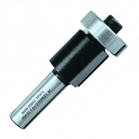 Mèche d’affleureuse droite carbure 2 coupes avec guide à billes. Permet de suivre un plan chantourné avec des angles serrés.