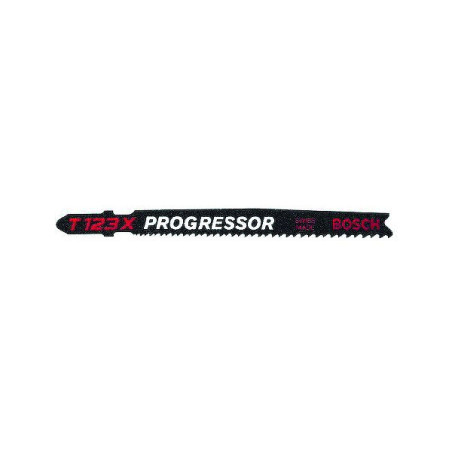 Lames de scie sauteuse T123XF Progressor for Metal - L 117 mm (lot de 5).Configuration de la denture : avoyé. fraisé.Domaines d'utilisation : Tôles minces à épaisses (1.5 - 10 mm). tuyaux + profilés (ø < 30 mm) y compris en aluminium.