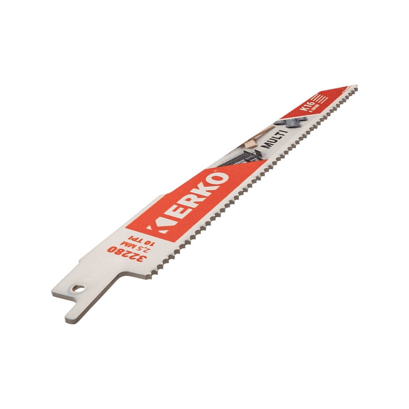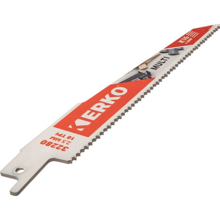 Lames de scie sabre bimétal multi-usages bois. métal et plastique.Technologie bimétal : l’association de 2 aciers.Un HSS M42 avec 8% de Cobalt très dur et résistant à l’échauffement pour les dents et un acier ressort très endurant pour le corps de la lame.Denture 6/10TPI (pas de 4/2.5mm) : Denture spéciale multi-usages. la denture alternée incluant de grosses dents (6TPI) procure une vitesse supérieure. Idéale pour les travaux multi-usages majoritairement bois. vibrations.Catégories K13 : Lames multi-usages de chantier. Dentures alternées.