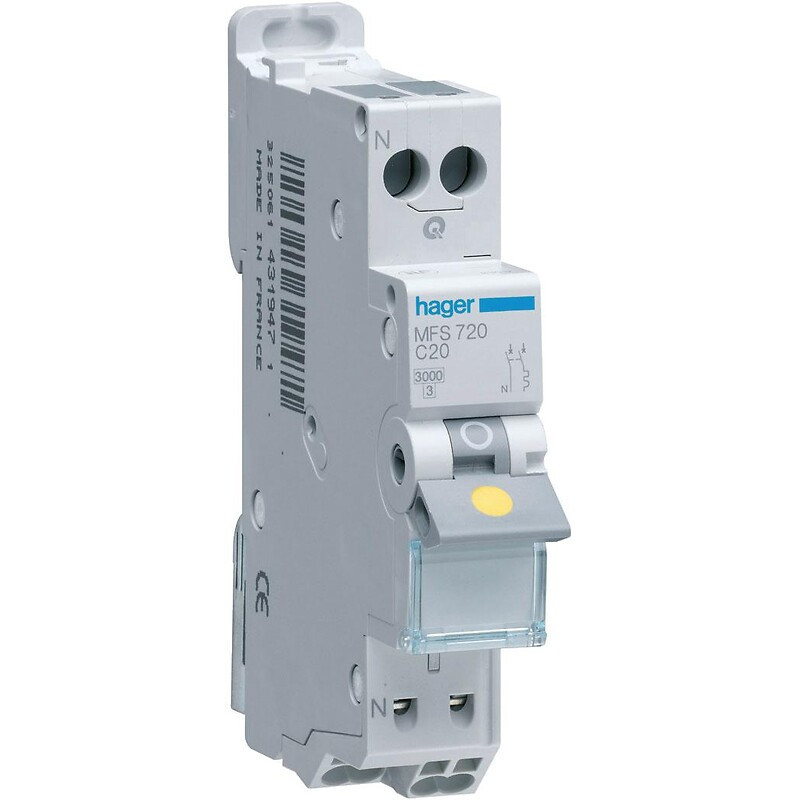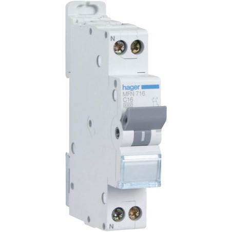 Courbe : C - Catégorie : Disjoncteur et coupe-circuit - Nombre de pôles : Unipolaire+neutre - Nombre de modules : 1 - Type de protection : Départ - Unité de vente : (1 pièce) •