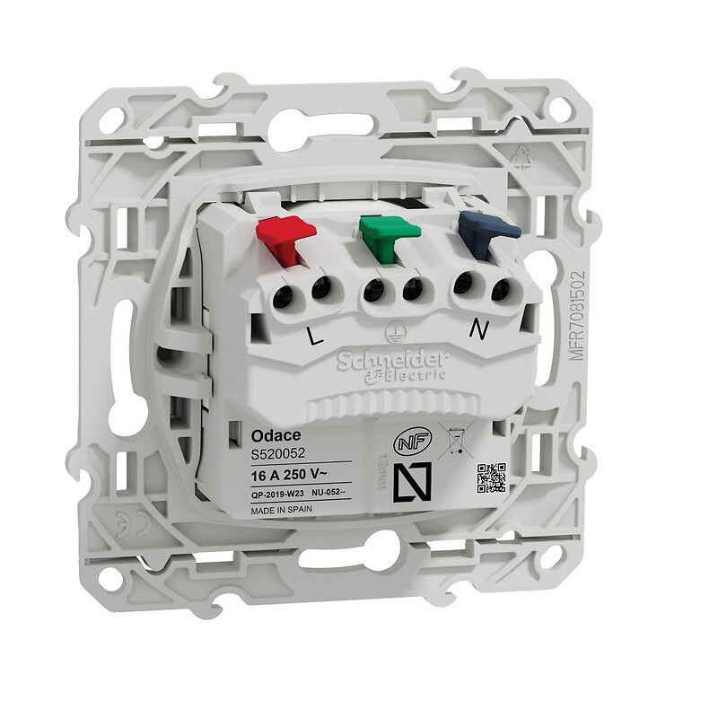 Catégorie : Prise de courant fort - IP : 20 - Série : Odace - Type de pose : Encastré - Intensité (A) : 16 - Unité de vente : (1 pièce) •
