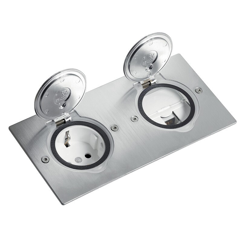 Finition : Inox brossé - Série : Platinium - Catégorie : Prise de courant fort - Type de pose : Sol - Unité de vente : (1 pièce) •