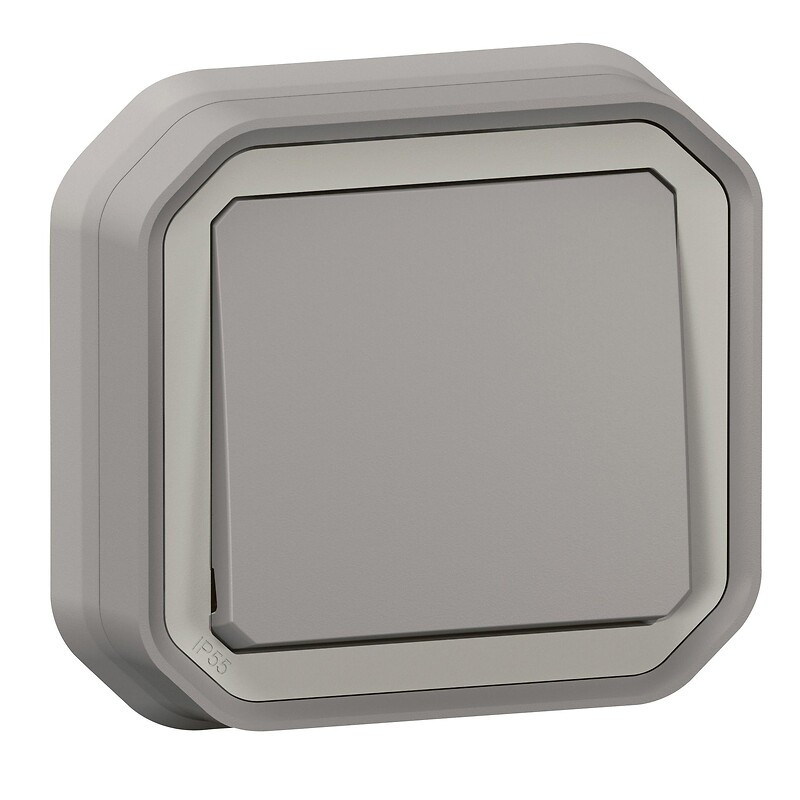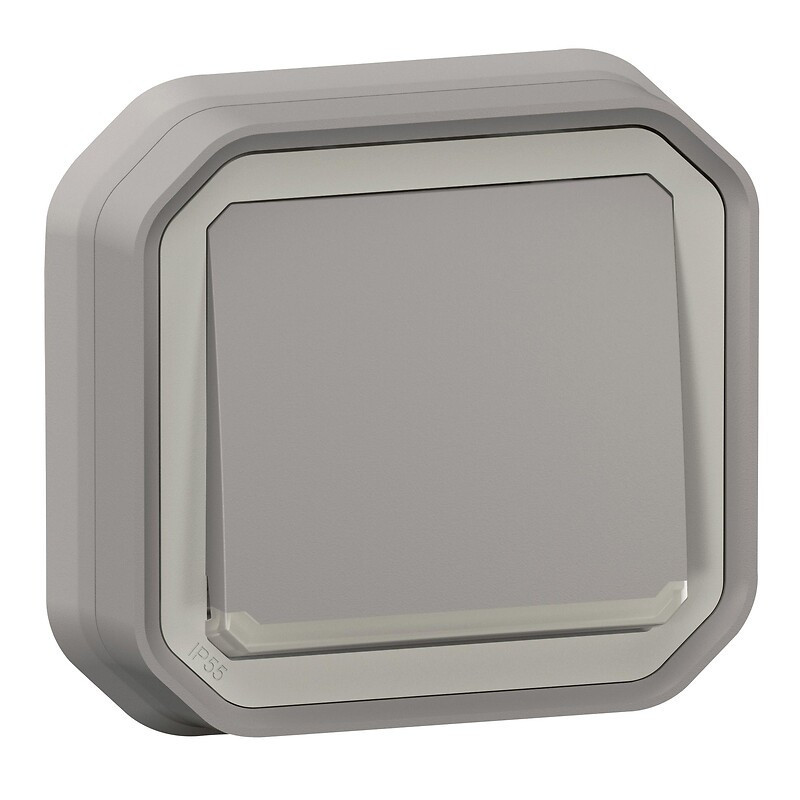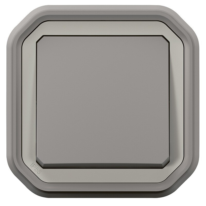 Finition : Gris - IP : 55 - Série : Plexo - Catégorie : Poussoir - Type de pose : Encastré - Calibre (A) : 10 - Unité de vente : (1 pièce) •