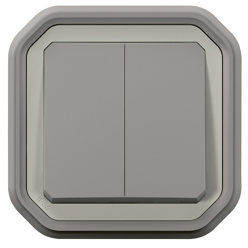 Finition : Gris - Catégorie : Va-et-vient - Série : Plexo - Type de pose : Encastré - IP : 55 - Calibre (A) : 10 - Unité de vente : (1 pièce) •