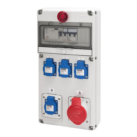Coffret triphasé 4 prises 2P+T 16 A + 1 socle 3P+N+T 32 A - GEWISS
