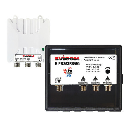 Kit préamplificateur UHF LTE 5G avec couplage SAT/VHF + alimentation 10 V - EVICOM