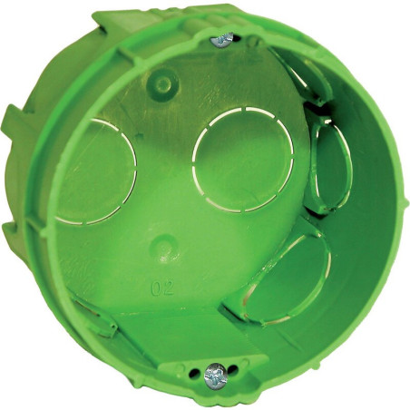 Type de cloison : Maçonnerie - Fonction : Boîte de dérivation encastrée - Nombre de postes : 1 - Profondeur (mm) : 40 - Diamètre (mm) : 65 - Unité de vente : (1 pièce) •