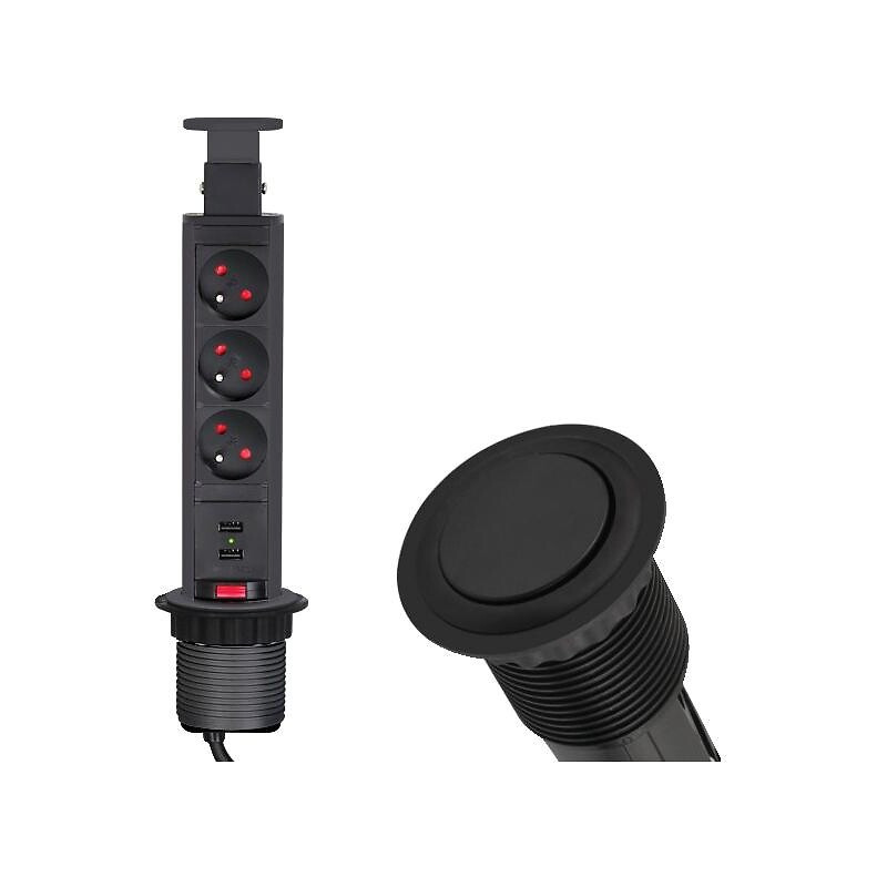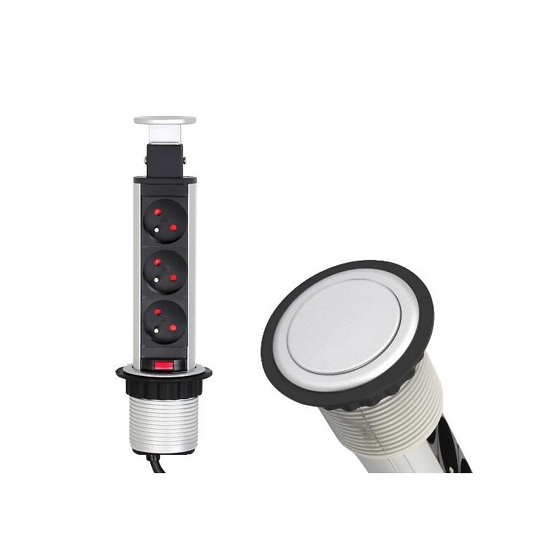 Bloc 3 prises escamotable 60 mm - SYNERCIA