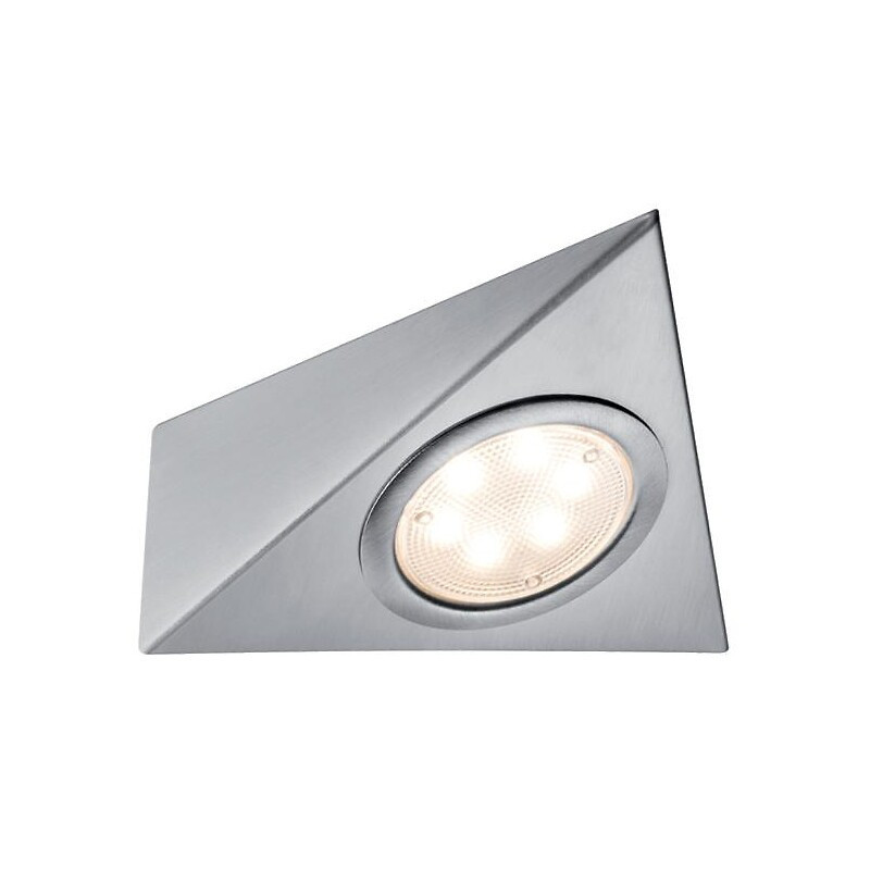 Finition : Acier brossé - Type de source : LED - Type de luminaire : Spot à fixer/saillie - Hauteur (mm) : 50 - Tension (V) : 12 - Longueur (mm) : 140 - Profondeur (mm) : 105 - Température de couleur (°K) : 2700 - Flux (lumen (lm)) : 3 x 170 - Puissance (watt (W)) : 3 x 2,8 - Unité de vente : (1 kit) •