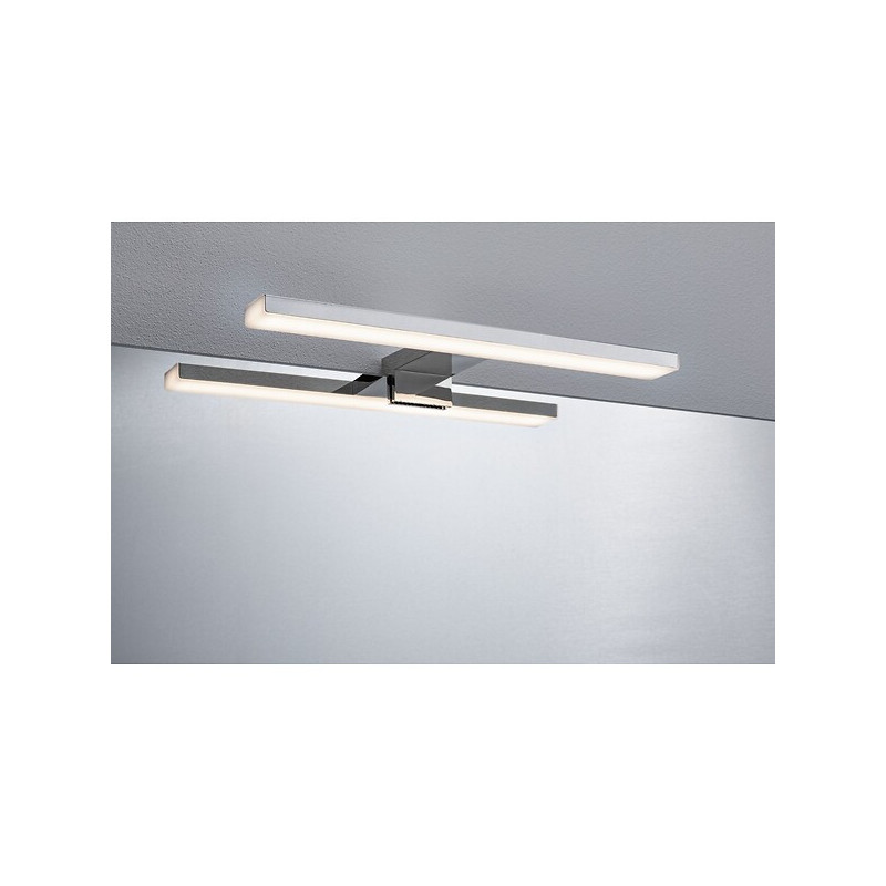 Finition : Chromé - IP : 44 - Type de source : LED - Type de luminaire : Applique - Hauteur (mm) : 39 - Largeur (mm) : 400 - Tension (V) : 230 - Puissance (W) : 8 - Profondeur (mm) : 105 - Température de couleur (°K) : 3000 - Flux (lm) : 1050 - Unité de vente : (1 pièce) •