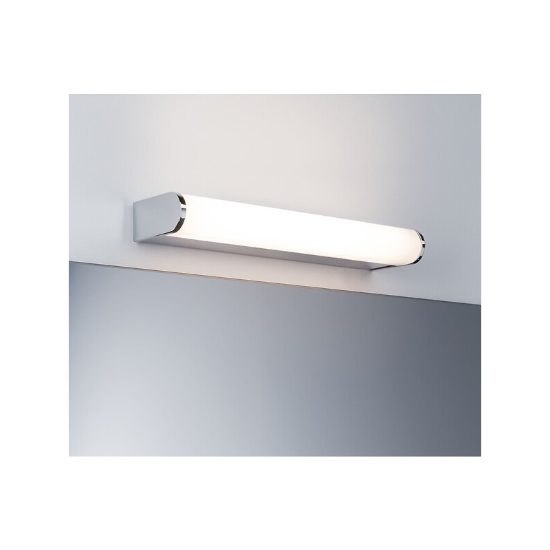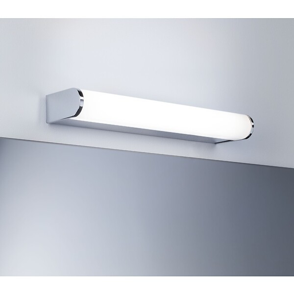 Finition : Chromé - IP : 44 - Type de source : LED - Lampe fournie : Ampoule LED intégrée - Hauteur (mm) : 40 - Largeur (mm) : 328 - Tension (V) : 230 - Profondeur (mm) : 78 - Unité de vente : (1 pièce) •