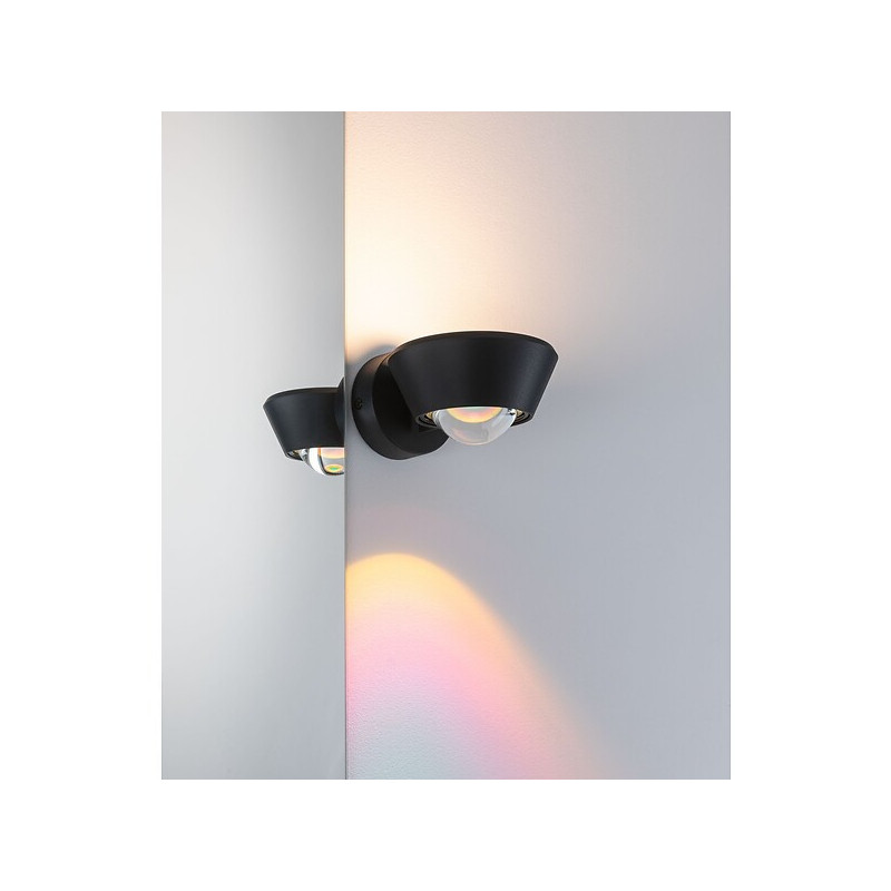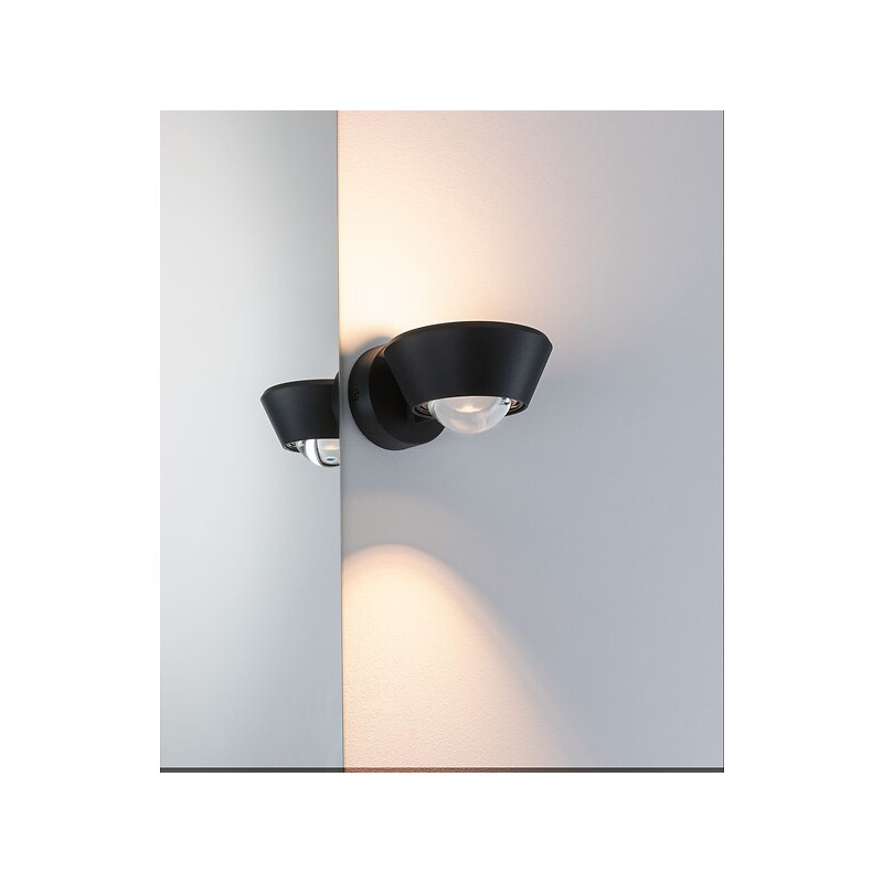 Finition : Noir - IP : 44 - Type de source : LED - Hauteur (mm) : 80 - Largeur (mm) : 117 - Tension (V) : 230 - Puissance (W) : 9 - Profondeur (mm) : 152 - Température de couleur (°K) : 2700 - Unité de vente : (1 pièce) •