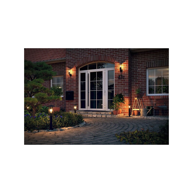 Finition : Gris foncé - Hauteur (mm) : 315 - Tension (V) : 230 - Largeur (mm) : 173 - Profondeur (mm) : 210 - Type de source : E27 - Type de luminaire : Applique extérieure - IP : 44 - Unité de vente : (1 pièce) •