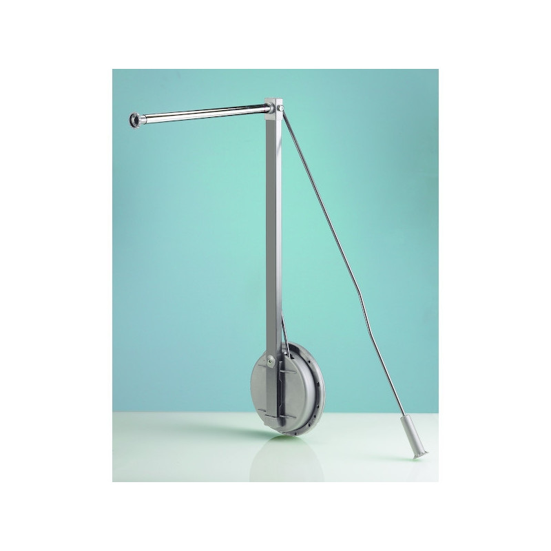 Raccord d'un seul coté Force portante 12 kg. Réglage en largeur télescopique 100 mm. Tube de penderie acier chromé. Boîtier. bras pivotant et pièce d’écartement PVC/acier fini aluminium. Pièce d’écartement pour surmonter le retrait de porte en option.