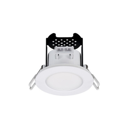 Spot LED fixe à encastrer au plafond.Flux lumineux dimmable (450 à 950 lm)Installable en salle de bain.Triple température de couleur paramétrable à l'installation : 2700K / 3000K / 4000K.Collerette blanche. anneau argenté supplémentaire inclus.Driver déporté et accessoire pour installation sous isolant déroulé.Diamètre d'encastrement : 68-74 mm.Diamètre du spot : 87 mm.Fixation rapide par clipsage.Angle de faisseau de 110°.
