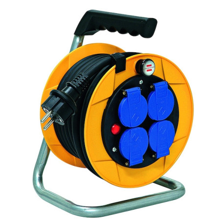 4 prises 2P+T 16A/230V à clapets.Poignée de transport ergonomique.Bouton tournant.Puissance maxi : câble déroulé 3500W. câble non déroulé 1000W.Disjoncteur thermique.