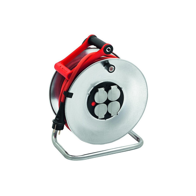4 prises 2P+T 16A/230V à clapets.Poignée de transport ergonomique avec guide-câble.Bouton tournant.Puissance maxi : câble déroulé 3500W. câble non déroulé 1000W.Disjoncteur thermique.Garantie 3 ans