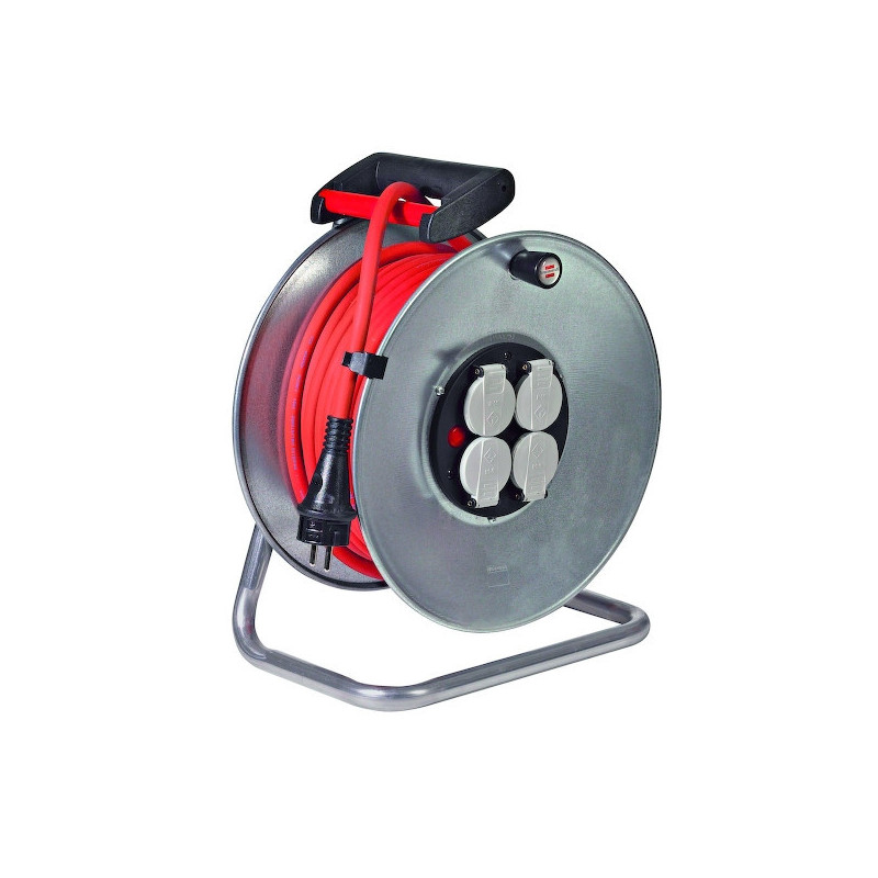 4 prises 2P+T 16A/230V à clapets.Poignée de transport ergonomique avec guide-câble.Bouton tournant.Puissance maxi : câble déroulé 3500W. câble non déroulé 1000W.Disjoncteur thermique.Garantie 3 ans