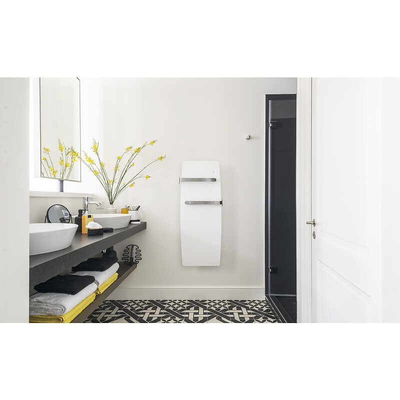 Coloris : Blanc - Matière : Aluminium - IP : 24 - Modèle : Plein - Catégorie : Sèche-serviette - Fonctionnement : Électrique - Nombre d'espaces : 0 - Fonction soufflant : Oui - Pilotage à distance : Oui - Hauteur (mm) : 1074 - Largeur (mm) : 452 - Tension (V) : 230 - Puissance (W) : 1500 - Profondeur (mm) : 167 - Unité de vente : (1 pièce) •