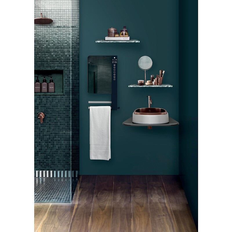 Sèche-serviettes électrique soufflant Télia avec miroir + 2 barres •