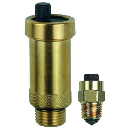 Matière : Laiton - Catégorie : Purgeur - Filetage : M 15x21 - Pression maximale (bar) : 12 - Température maximum (°C) : 110 - Unité de vente : (1 pièce) •