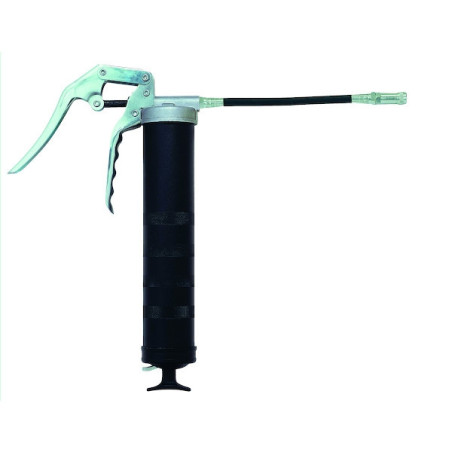 Pistolet de graissage manuel. Equipé d'un flexible 270 mm et d'une agrafe 4 mors. Ø corps de pompe : 57 mm. Grade graisse : NLGI 2.Garantie 1 an