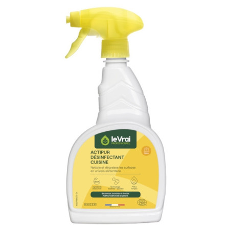 Dégraissant désinfectant enzymatique prêt à l'emploi pour surfaces alimentaires certifié Ecocert.Action virucide. bactéricide et levuricide : efficacité couverte sur Coronavirus. Salmonelle et Listeria.Utilisation : points de contacts. surfaces hautes. banques réfrigérées. ateliers de transformation. plans de travail. tables...Teneur en composés organiques volatils : 0.05%. Démarche HACCP (sécurité alimentaire).