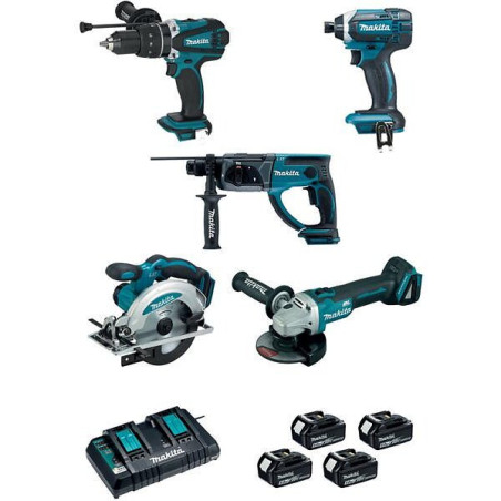 Kit 5 outils DHP458+DTD152+DHR202+DGA504+DSS610+BL1850x4+DC18RD + Scie sabre 18V machine nue - MAKITA