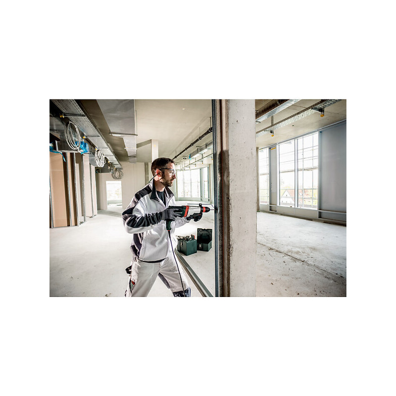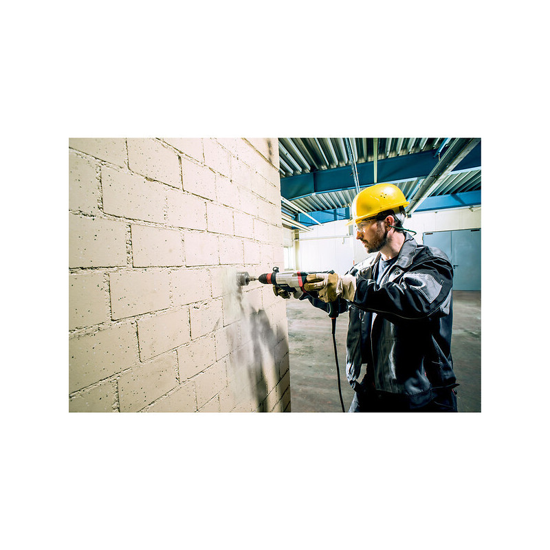Type d'alimentation de l'outil : Secteur - Fonction : Perçage à percussion, perçage et burinage - Emballage : metaBOX 145 L - Équipements : Mandrin marteau pour outils à emmanchement SDS-plus, Mandrin à serrage rapide pour outils à queue cylindrique, Poignée caoutchoutée supplémentaire, Butée de profondeur de perçage, metaBOX 145 L - Porte-outils : SDS+ - Conditionnement : 1 - Poids (kg) : 3.10 - Puissance (W) : 880 - Vibration (m/s²) : 12.90 - Pression sonore (dB(A)) : 89 - Cadence de frappe (cp/min) : 4400 - Énergie de frappe (J) : 3.20 - Diamètre de perçage béton (mm) : 28 - Diamètre de perçage bois (mm) : 32 - Diamètre de perçage acier (mm) : 13 - Vitesse de rotation à vide (tour par minute (tr/min)) : 0 - 1150 - Unité de vente : (1 pièce) •