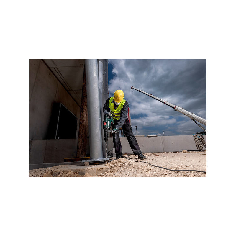 Type d'alimentation de l'outil : Secteur - Équipements : Poignée caoutchoutée supplémentaire, Graisse spéciale pour les emmanchements d'outil, Chiffon de nettoyage, Coffret en plastique - Fonction : Perçage à percussion et burinage - Emballage : Coffret - Porte-outils : SDS Max - Conditionnement : 1 - Poids (kg) : 12.40 - Puissance (W) : 1500 - Vibration (m/s²) : 14.10 - Pression sonore (dB(A)) : 98 - Cadence de frappe (cp/min) : 2360 - Énergie de frappe (J) : 18.80 - Unité de vente : (1 pièce) •