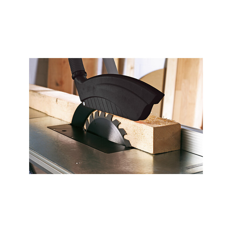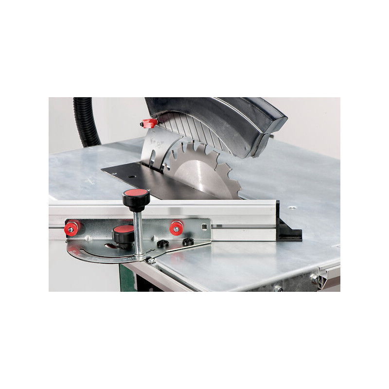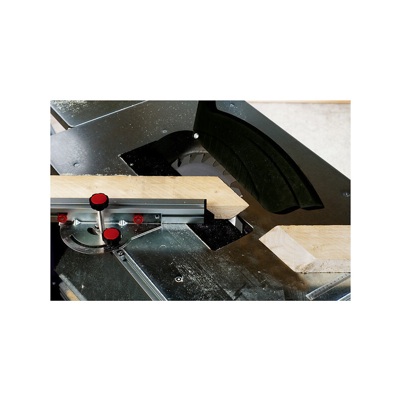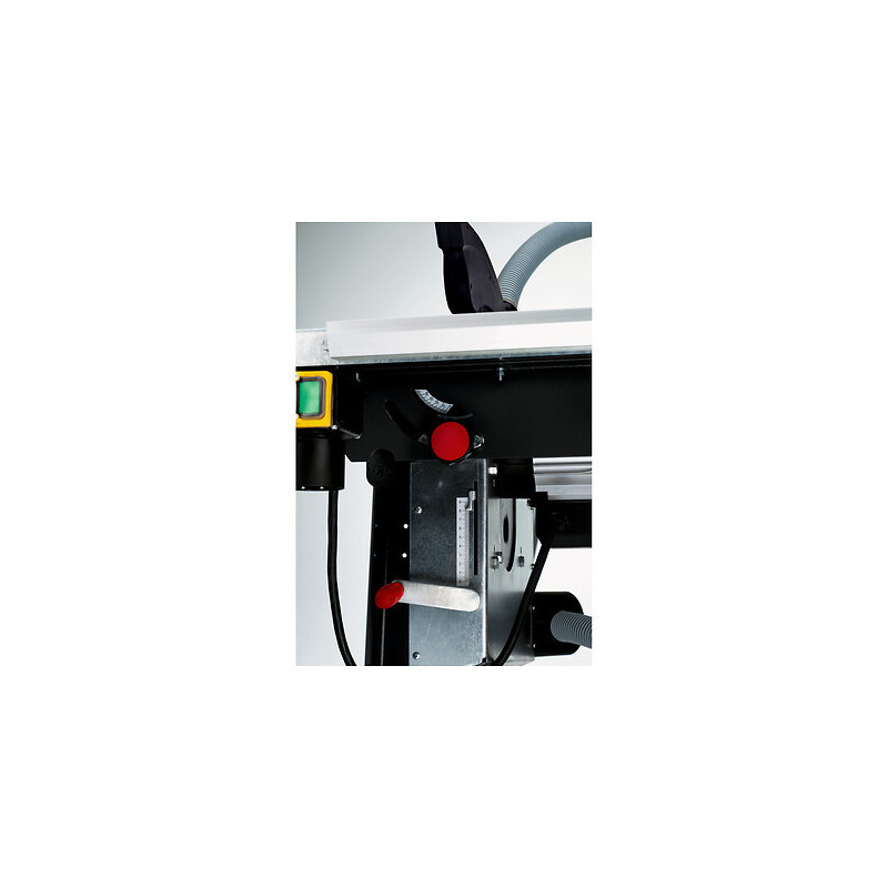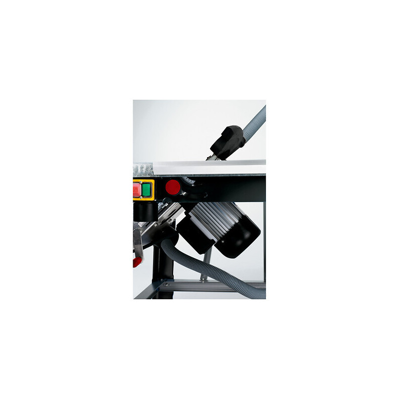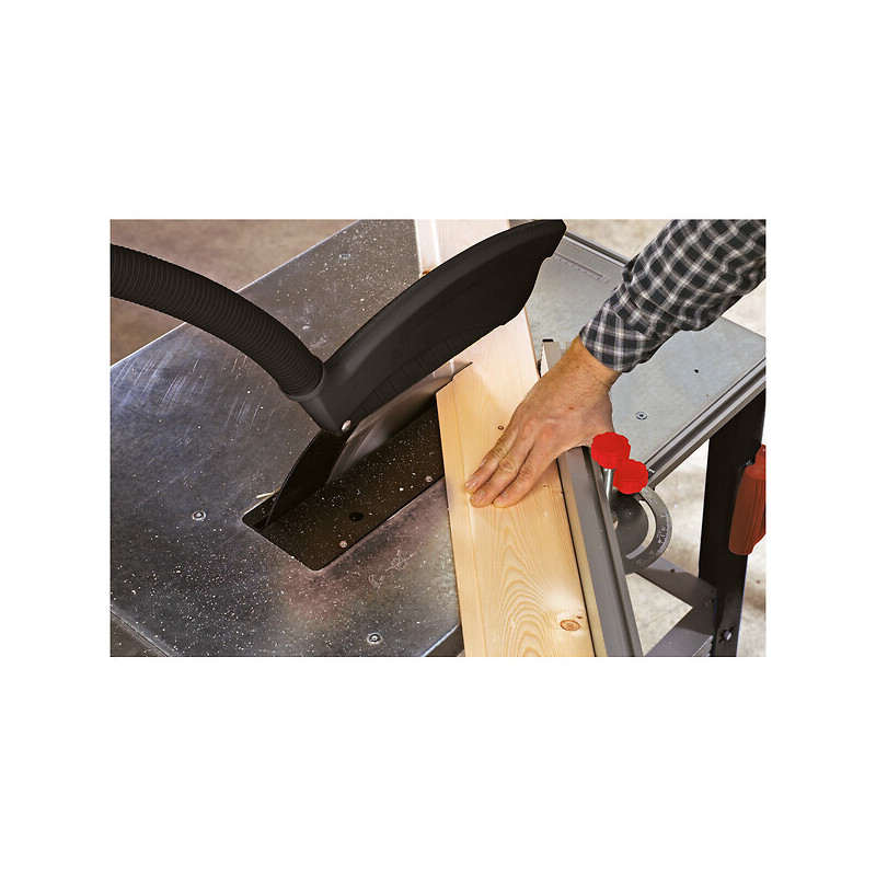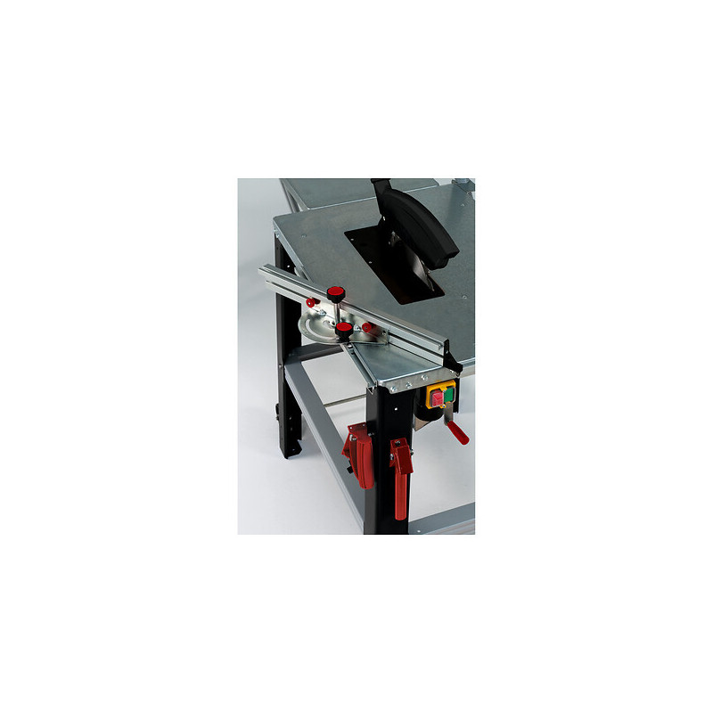 Norme du produit : Conforme à la norme CELame de scie carbure à denture étagée (24 dents)|Chariot avec poignées|Guide universel|Rallonge de table (550 x 800 mm)|Dispositif d'aspiration des sciures|Bton poussoir •