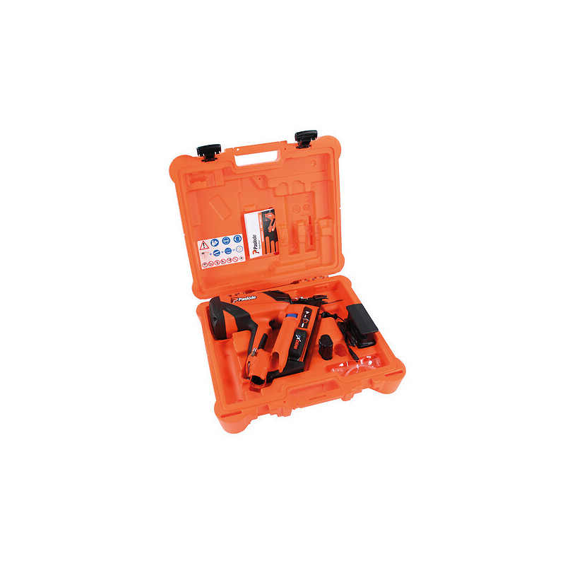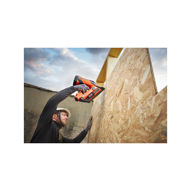 Type d'alimentation de l'outil : Gaz/Batterie - Emballage : Coffret de transport - Matériaux : Bois. acier - Équipements : Batterie. chargeur. lunettes de sécurité. clé Allen. - Capacité du chargeur : 47 clous - Conditionnement : 1 - Poids (kg) : 3.60 - Énergie (J) : 105 - Vibration (m/s²) : 3.90 - Pression sonore (dB(A)) : 95 - Cadence de tir (tirs par seconde (tir/s)) : 2 à 3 - Longueur des pointes (millimètre (mm)) : 50 à 90 - Unité de vente : (1 pièce) •
