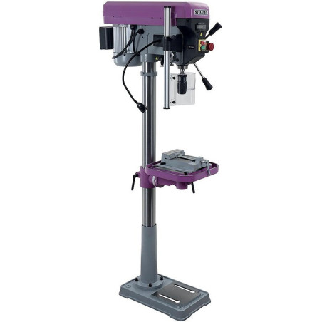 Nombre de vitesses : 16 - Poids (kg) : 66 - Puissance (W) : 750 - Hauteur totale (mm) : 1550 - Course de la broche (mm) : 85 - Diamètre de perçage (mm) : 22 - Diamètre de la colonne (mm) : 72 - Distance maximum : broche-socle (mm) : 1175 - Distance maximum : foret-colonne (mm) : 180 - Distance maximum : broche-plateau (mm) : 685 - Vitesse de rotation (tour par minute (tr/min)) : 210 à 2880 - Unité de vente : (1 pièce) •