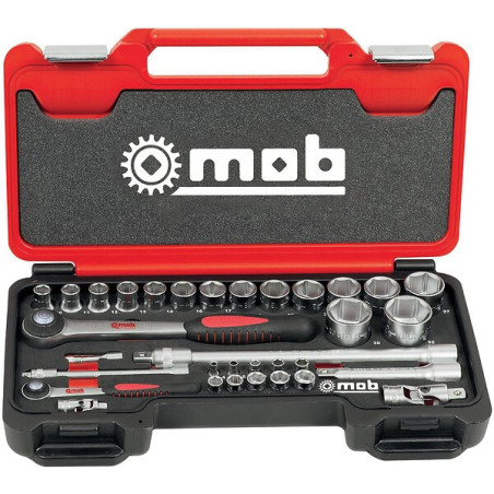 Coffret box 1/4" et 1/2" 6 pans 33 pièces avec cliquet rond - MOB