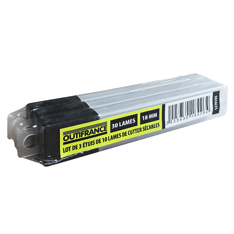 Lot de 3 étuis de 10 lames pour cutter. largeur 18 mm - OUTIFRANCE